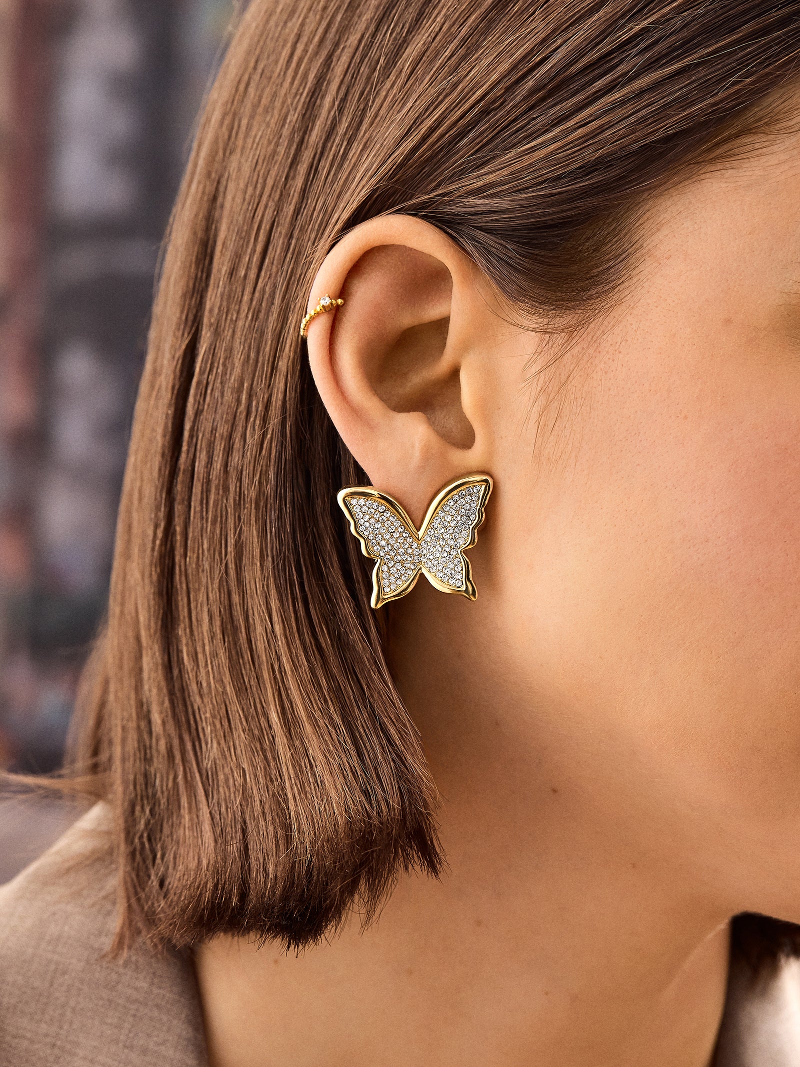 Mickey Mouse Disney 18K Gold Plated Sterling Silver Huggie Hoop Earrings - Clear/Gold