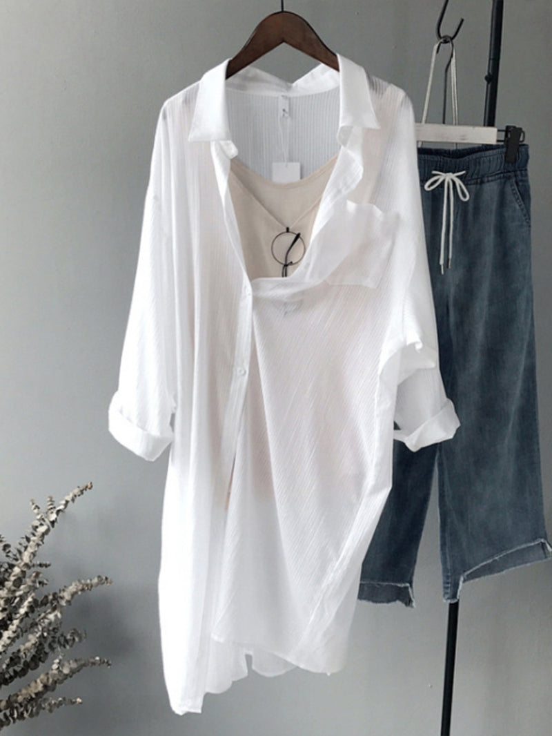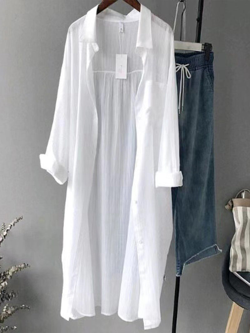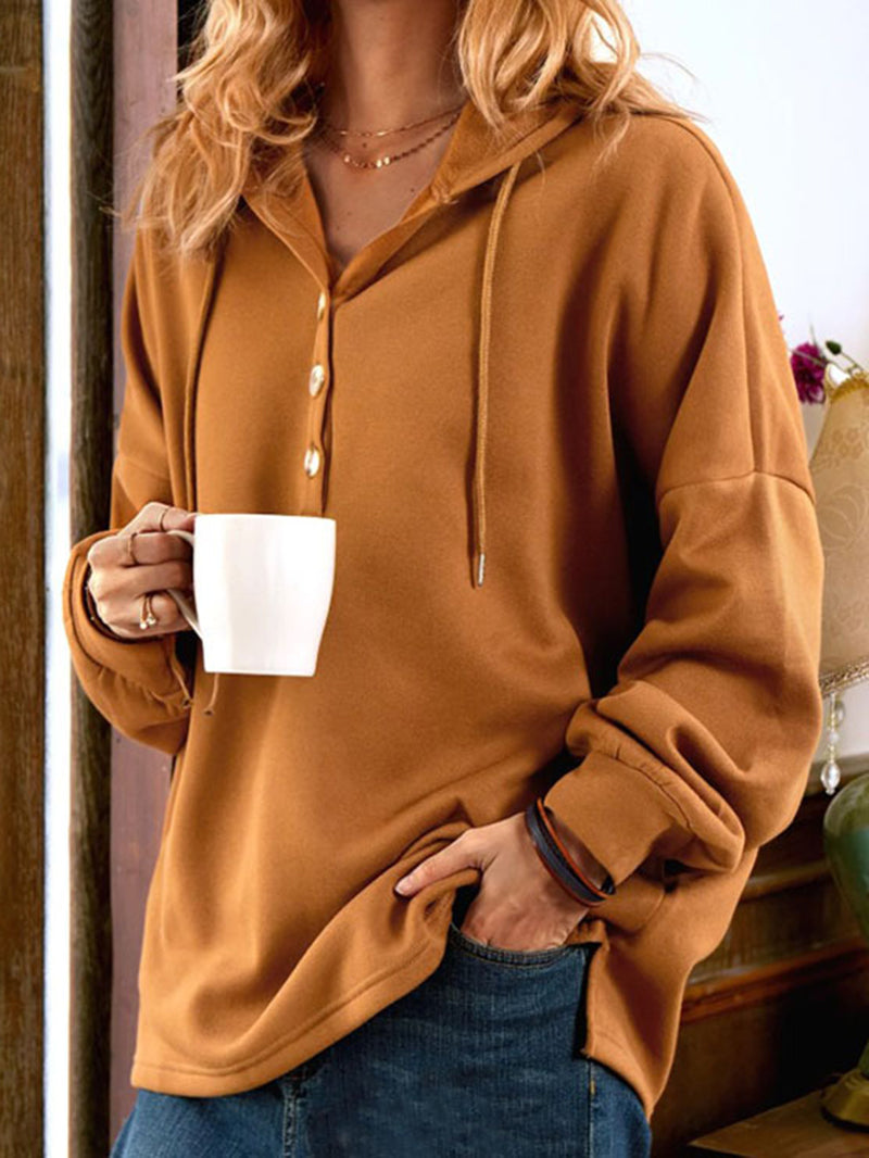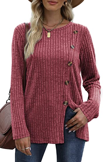 Women's Long Sleeve Crew Neck Tunic Tops Buttons Side
