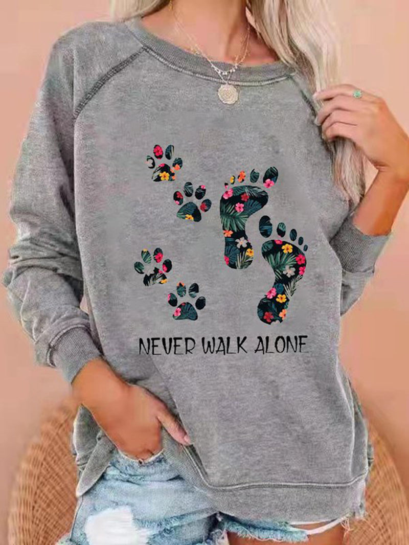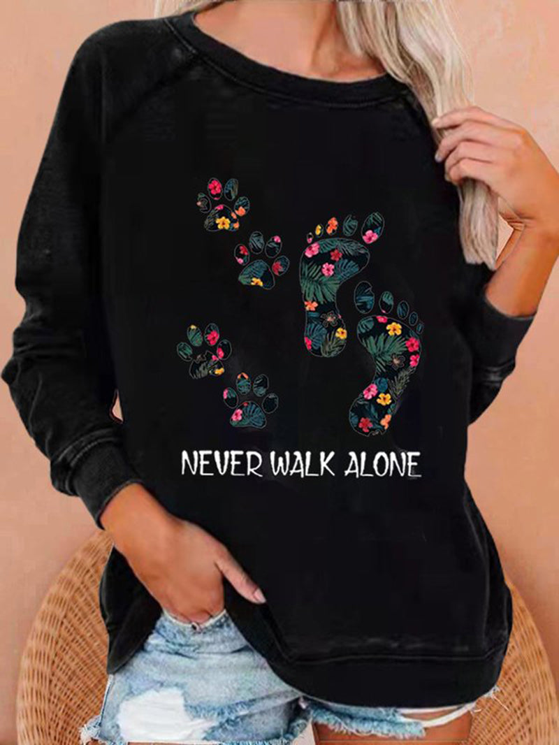 NEVER WALK ALONE Dog Paw Printed Hoodies & Sweatshirt