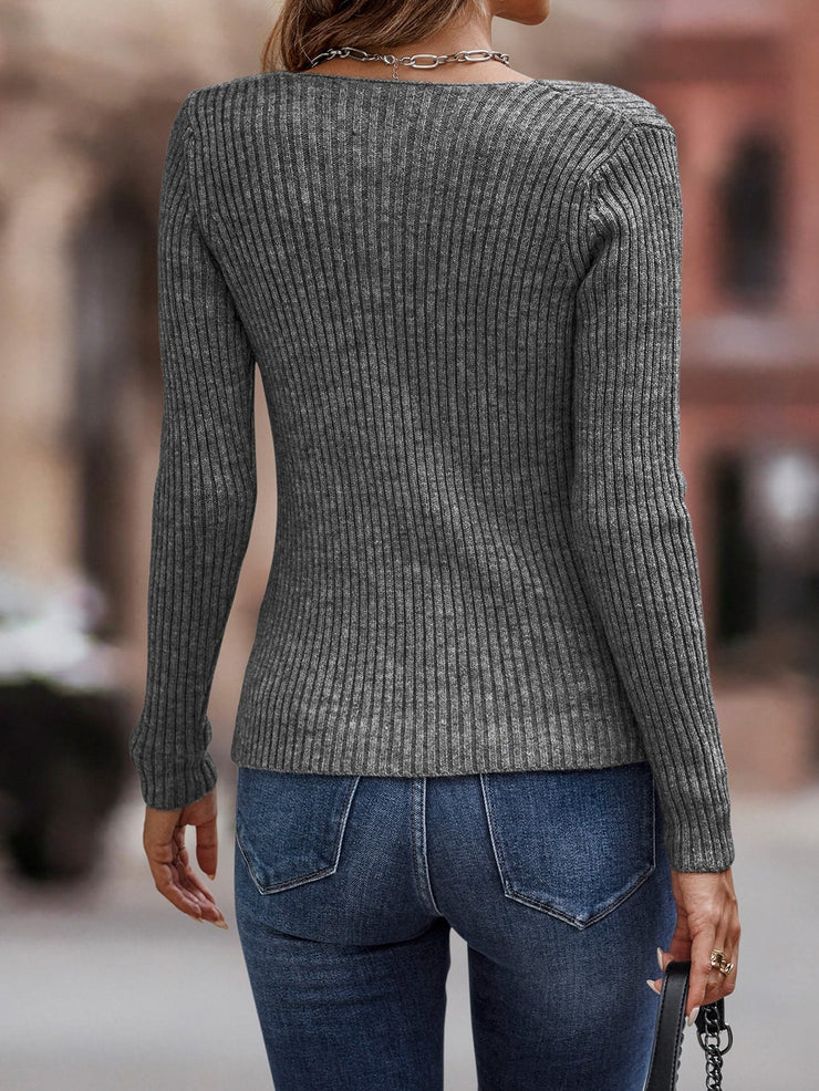 Pull asymétrique gris fumé côtelé