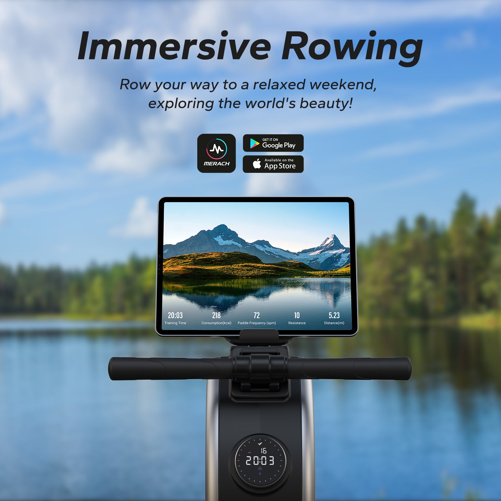APPLICATION MERACH GRATUITE : Notre application exclusive vous propose une variété de cours d'exercice dirigés par des entraîneurs, des modes de rameur pittoresques et personnalise votre programme de fitness. Suivez vos progrès d'entraînement avec des métriques en direct. Conçu pour vous aider à atteindre vos objectifs. (Compatible KINOMAP également)