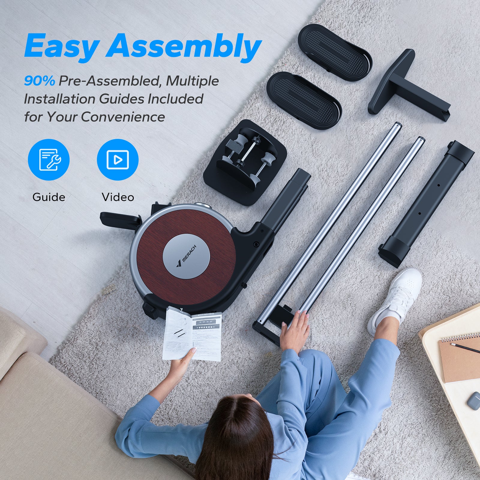 Facile à assembler : Les machines à ramer MERACH peuvent être assemblées facilement par la plupart des utilisateurs en moins de 30 minutes. Elles sont partiellement pré-assemblées et peuvent être déplacées facilement.
