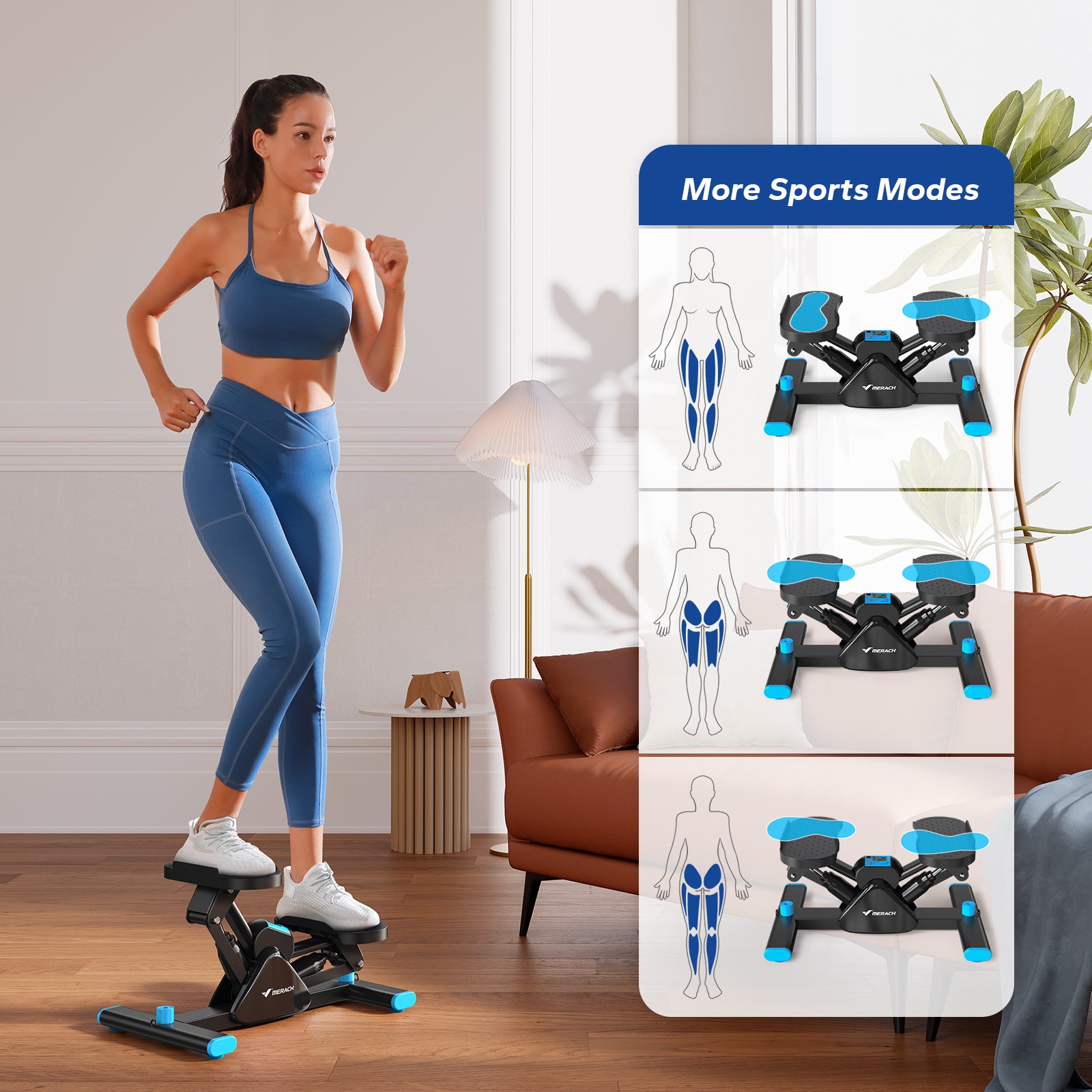MERACH mini stair stepper machine allows for multiple exercise positions, each targeting different muscle groups, with a focus on effectively stretching and strengthening your leg muscles.