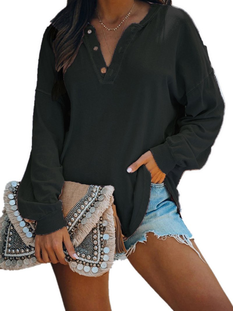 Solid Color Long Sleeve V-neck Shirt