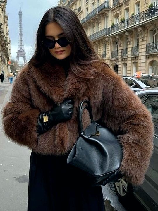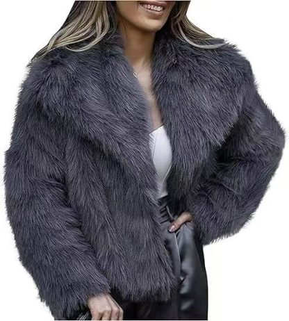 跨境外贸仿皮草外套女短款时尚仿狐狸毛上衣新款秋冬毛绒翻领大衣
