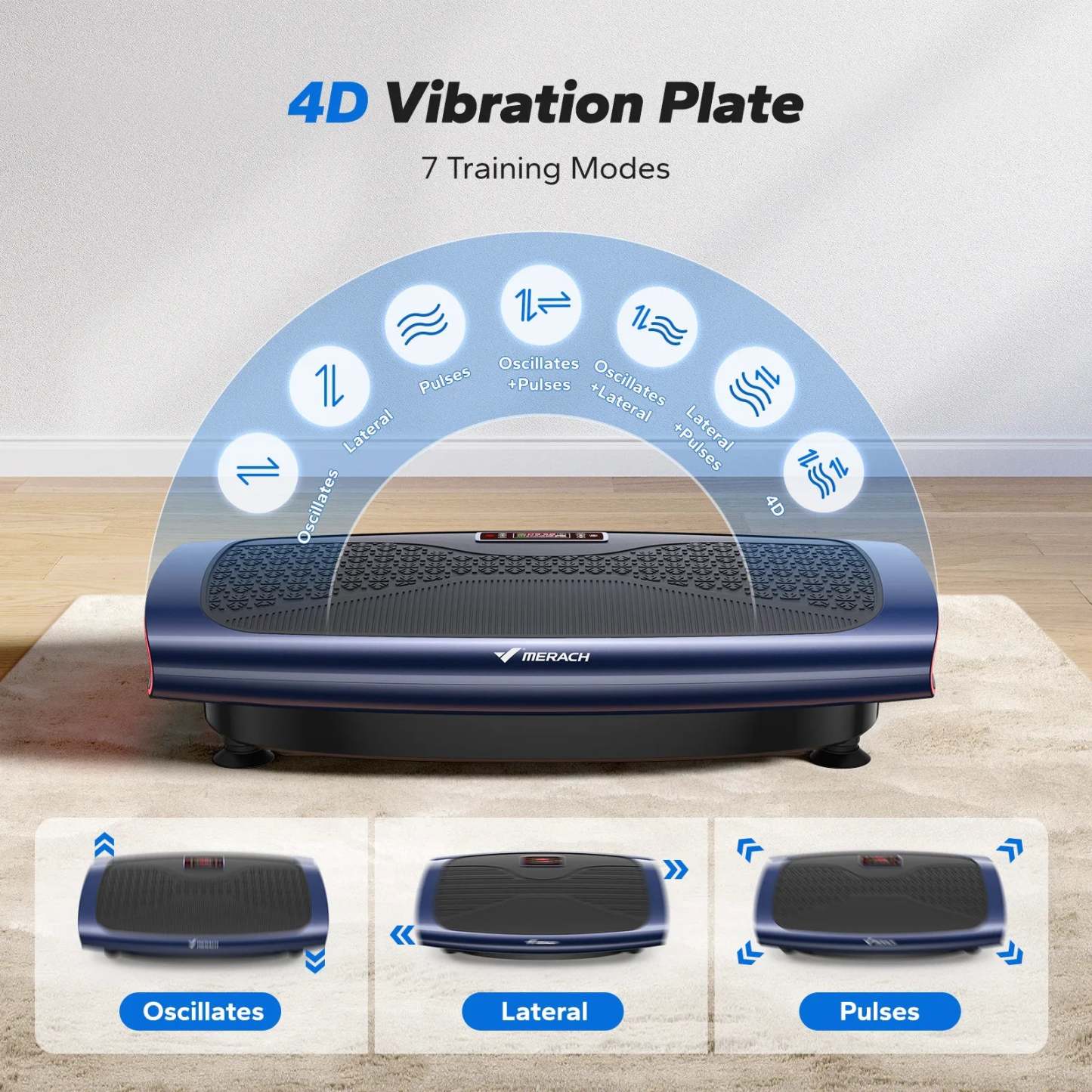 MERACH vibration plate exercise machine not only promotes lymphatic drainage and blood circulation but also helps increase bone density, relieve chronic pain, and relax muscles. Regular use can improve fitness, repair old injuries, and provide a greater range of motion.