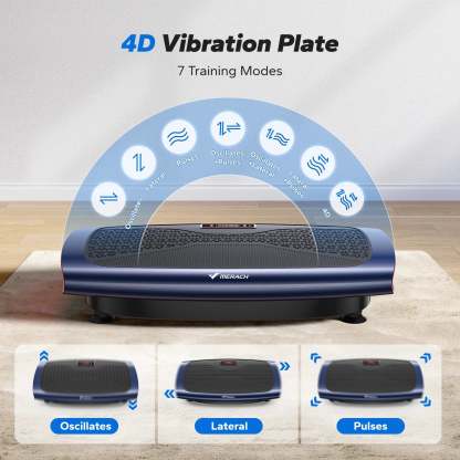 Experience advanced 4D vibration technology with oscillation, lateral, pulse, and three combined modes. This comprehensive approach promotes lymphatic drainage, circulation, bone density, fat burning and overall results for a well-rounded and efficient workout experience.