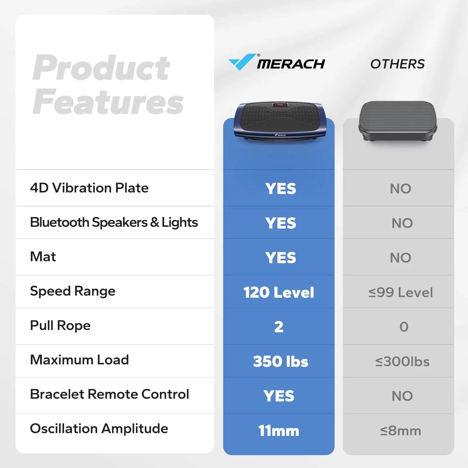 MERACH aims to let more people enjoy the fun of home fitness. All of our products are produced by professional factories and undergo strict quality control. You can use our vibrating plate exercise machine with confidence. We have perfect after-sales service and provide telephone and email support. If you have any questions, please feel free to contact us.