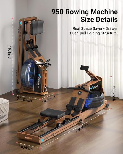 The drawer-style folding design reduces volume by 45% for easy storage. The 950 Rower has a drawer-style push-pull folding structure that makes it easy to store. The foldable design is less prone to damage and allows the wood Rowing machine to be stored vertically against the wall, Save your home place.
